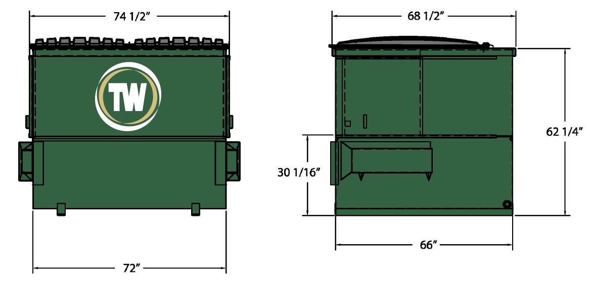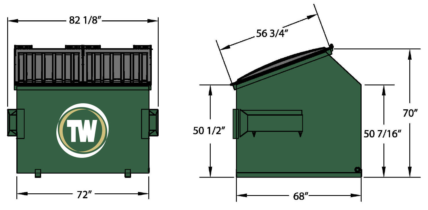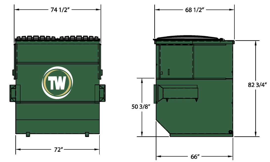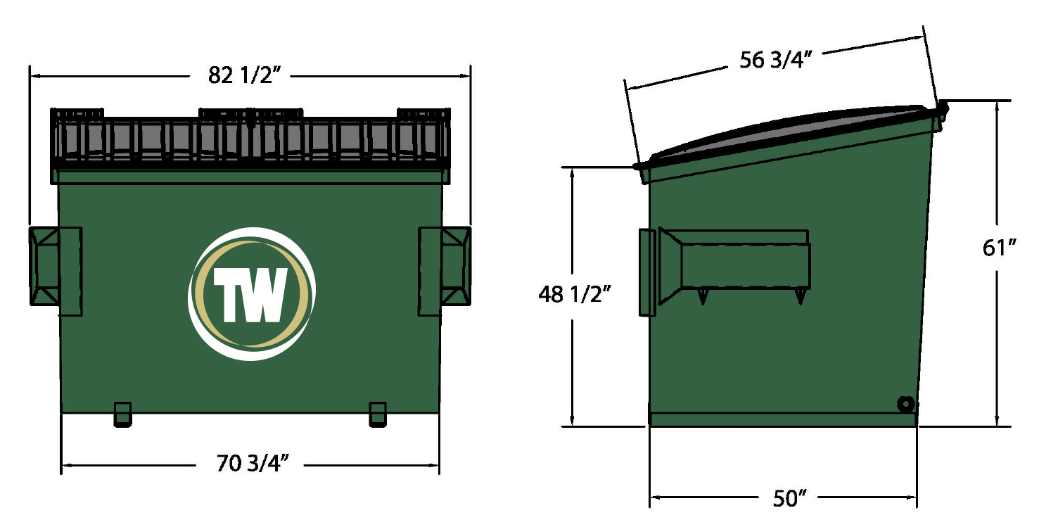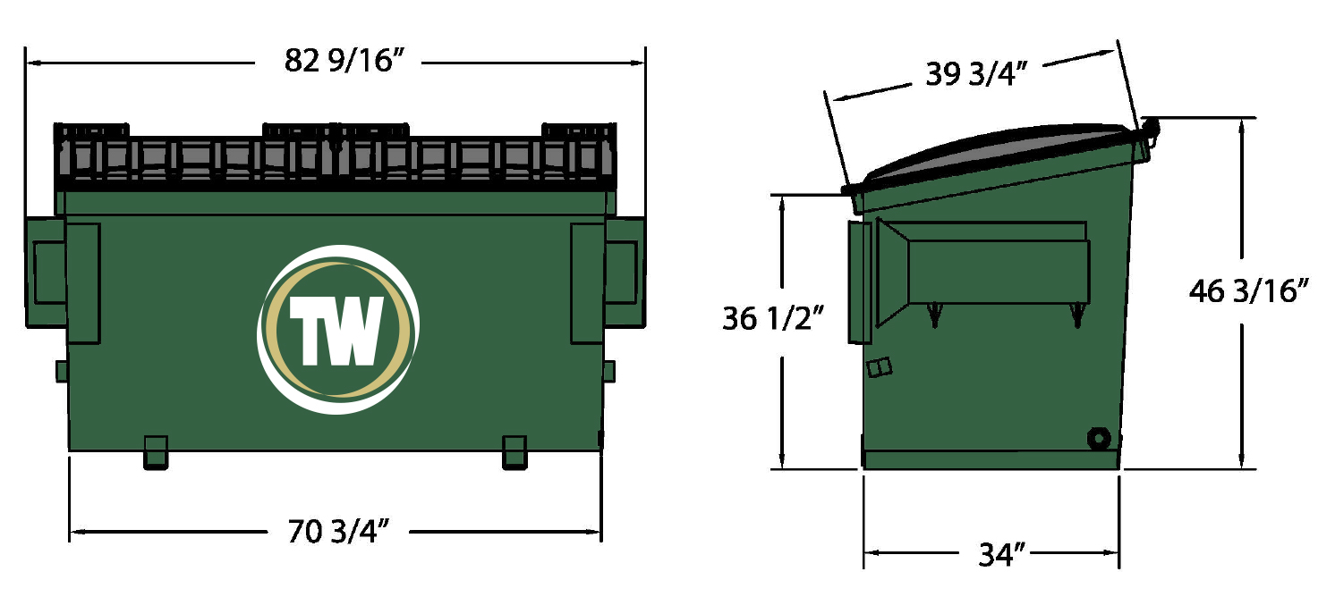 Team Waste provides front load dumpster rental service for 2, 4, 6 and 8 cubic yard dumpsters. Please see the dimensions below and a description of what each size can generally hold.