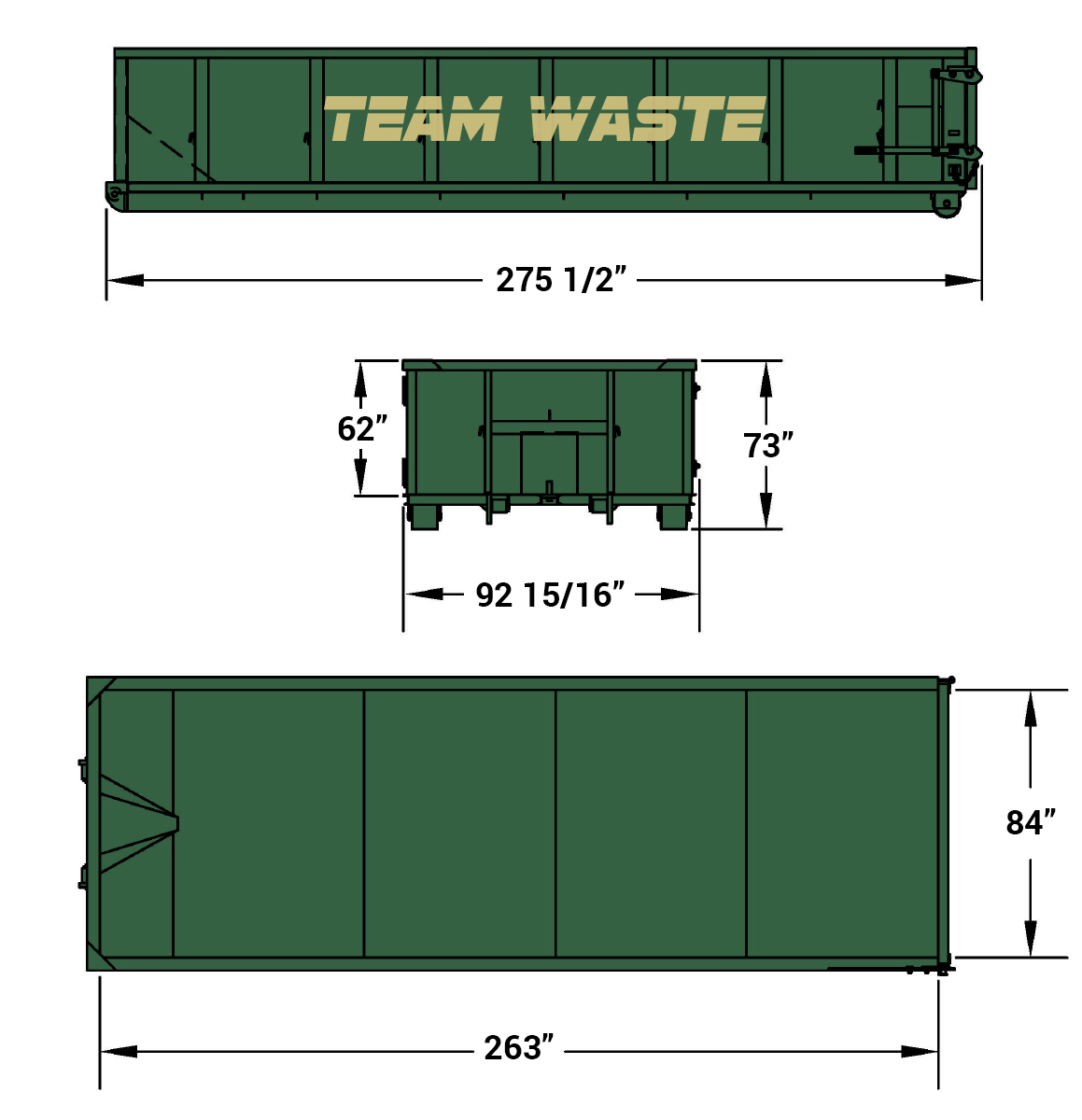 Team Waste provides 12, 20, 30 and 40 cubic yard roll-off construction waste dumpsters and open top roll-offs. Whether your project is a small home remodel or a large construction project, a roll-off dumpster from Team Waste is a convenient, cost-efficient, and time-saving option for any job site.